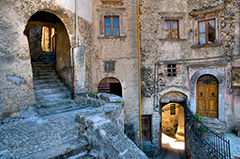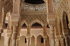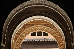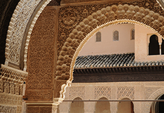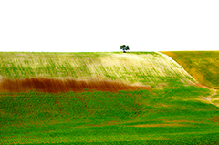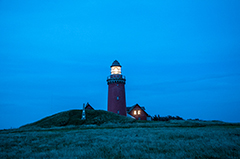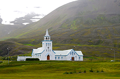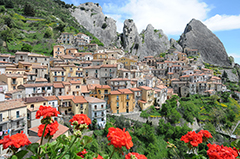 Campanile su cielo azzurro con stormo di uccelli in volo
