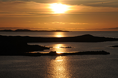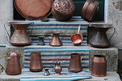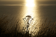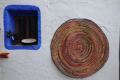 Tavolini e sedie blu in riva al mare con polipi stesi al sole